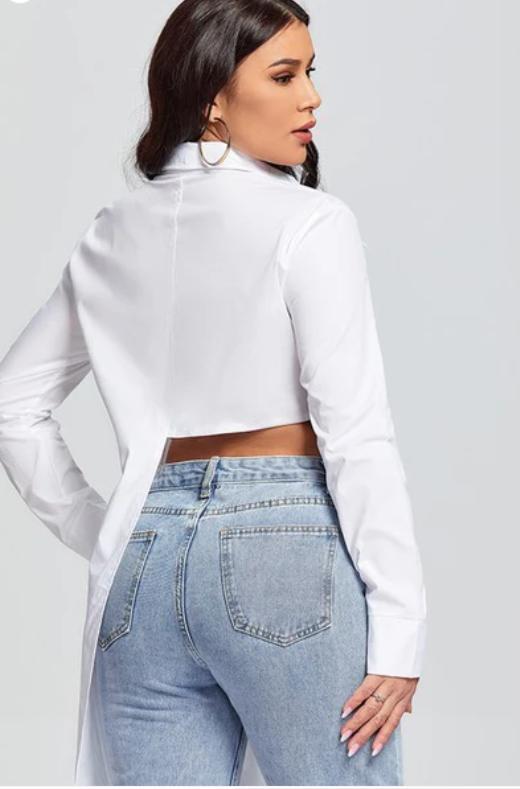 Asymmetric Cut Crop Shirt Tops